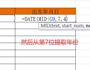 将公式中的“身份证号”更改为身份证号对应的单元格如图更改为对应的单元格“B2”=MID,