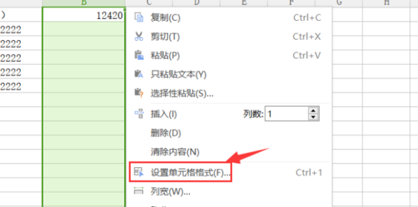 3.选中整个B单元格单击鼠标右键,选择“设置单元格格式”进入