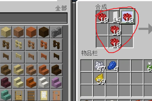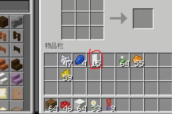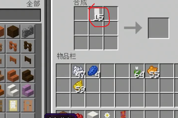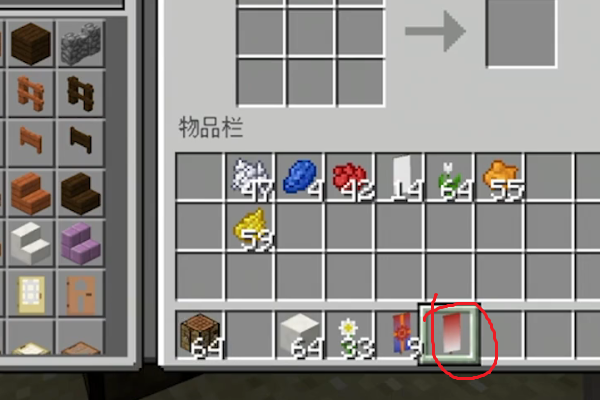 6、如图红圈所示,把这个旗帜放入物品栏备用。