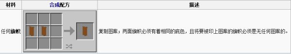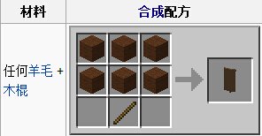 2.旗帜的合成方法是用6个羊毛和一根木棍,羊毛在上,木棍在下,白色的羊毛合成的是白色旗帜。