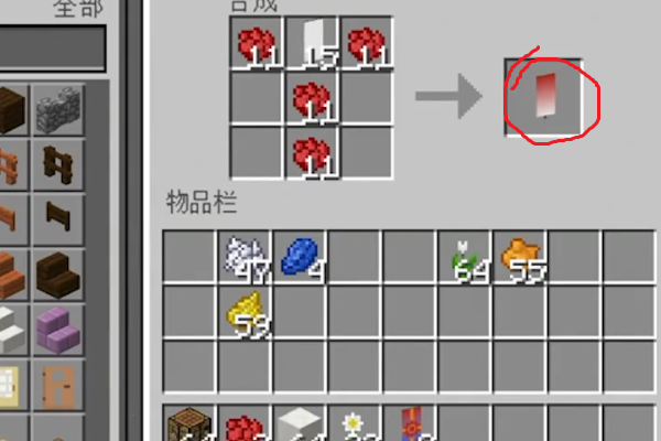 5.比如制作一个白色旗帜带有红色圆形的旗帜,需要一个玫瑰红染料+白色旗帜来合成。