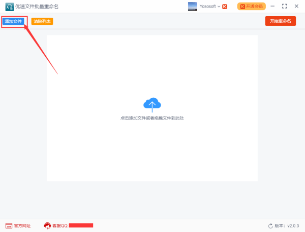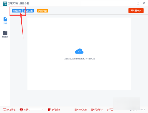 步骤1,下载工具软件后安装打开,然后点击左上角的【添加文件】按钮,将内需要修改名称的文件全部添加到软件中。