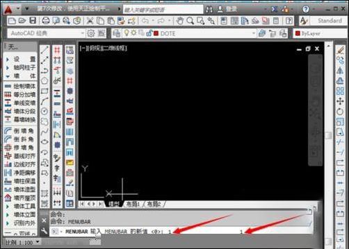 2、在命令栏输入“ menubar”, 然后点击“ 回 车”。