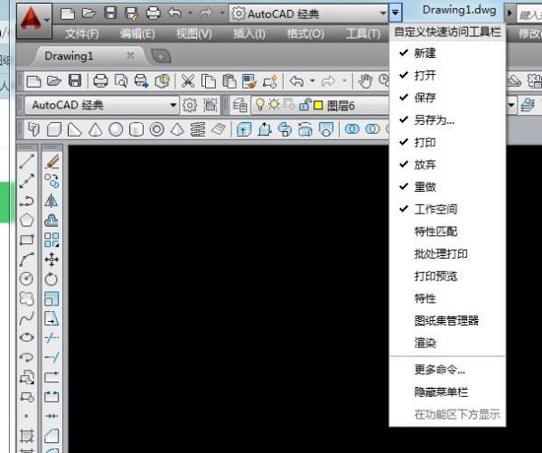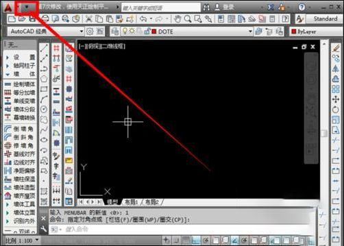 点击绘图界面左上角挨着 cad图标的那个倒三角形 。