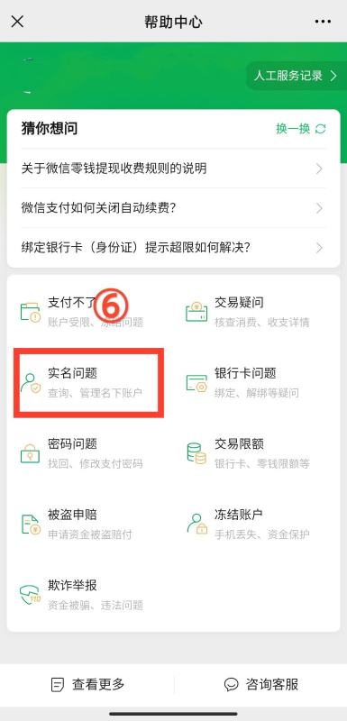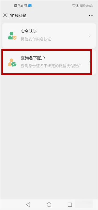 第2步:选择【实名问题】,进入【查询名下账户】;