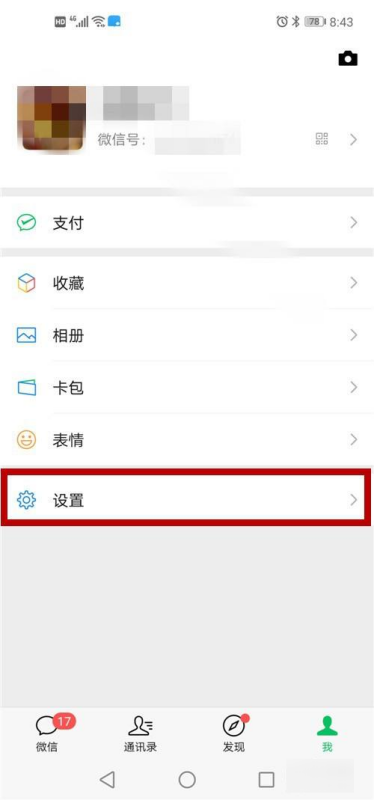 1、 进入微信首页,点击右下角【我】,选择【设置】;