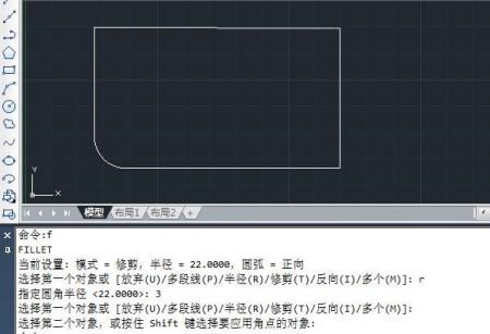 浩辰CAD制图软件中的“F”是圆角命令快捷键,全称是:FILLET,可以对图形进行圆角化操作,也可以对图形进行修剪。使用方法: