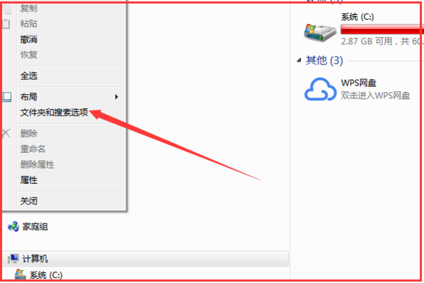 2、进入到组织的页面以后,接下来在弹出来的页面选择【文件夹和搜索选项】。