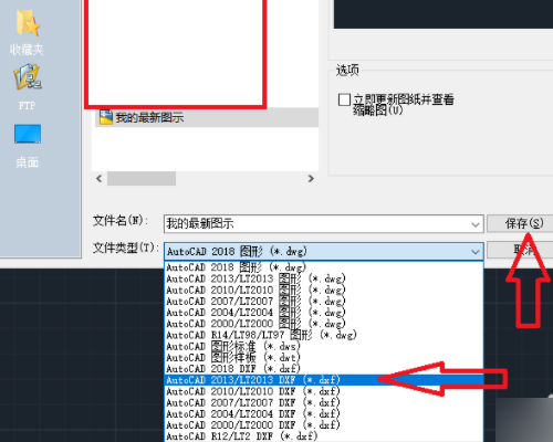 5、进入后,点击选择dxf格式,点击保存即可了,如下图所示。