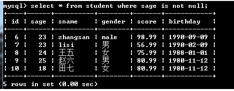 1 create table student( sno varchar(5) not null primary key, sname varchar(10), ssex char(2), sage int, sdept varchar(20)) 2 alter table student add scome datetime 3 select sno,grade from sg where cno=5 order by grade desc 4 select max(grade) as 最高成绩,avg(grade) as 平均成绩 from sg where cno=1 5 delete f使用mysql 一个数据库中有俩个表: student(学生表) 和score(成绩表)