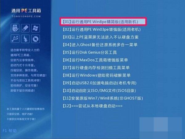 1、将pe启动盘插在电脑上,并在开机的时候按下电脑的热键进入pe系统,然后选择第一项回车进入。