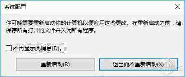 3、接下来会弹出重新启动的提示窗口,直接点击【重新启动】即可进入【安全模式】,如果此时你还有需要保存的文档,可以点击【退出而不重新启动】按钮,处理完手边的事情然后手动重启进入【安全模式】;