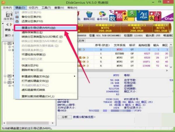 4、在弹出的下拉菜单中点击重建主引导记录选项。