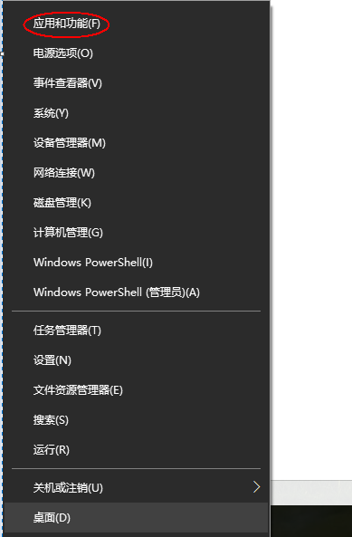 1、右击电脑左侧的“Windows徽标”,在弹出的菜单中选择顶部的“应用和功能”,点击进入下一步