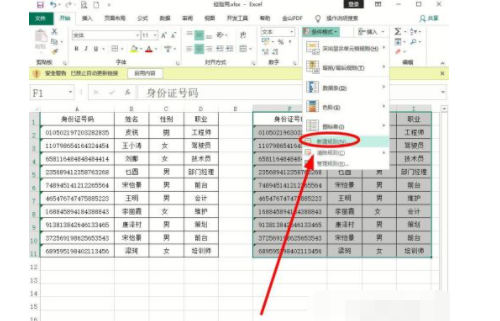 3、选择刚粘贴过来的数据,选择【开始】功能栏中的【条件格式】。