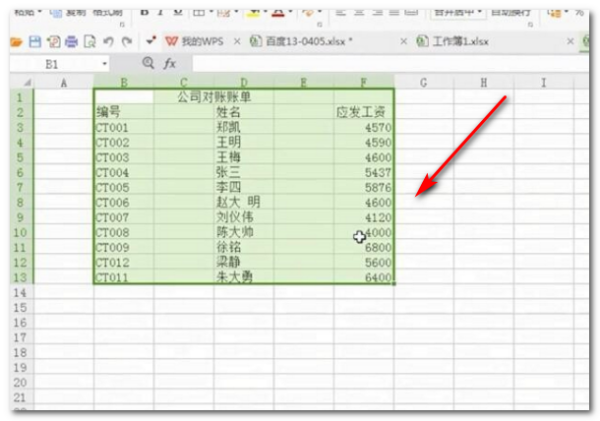 2、把工资表1里的数据全部选中,右键选择复制,如图。