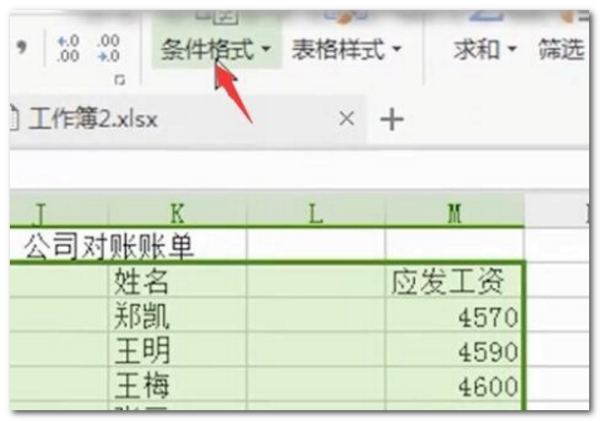 3、选中刚才粘贴过来的数据,找到菜单栏“开始”选项卡下的“条件格式”单击。