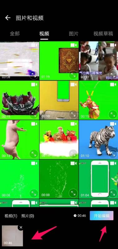2、然后再添加一段手机里要剪辑的视频进入,并点击开始编辑。