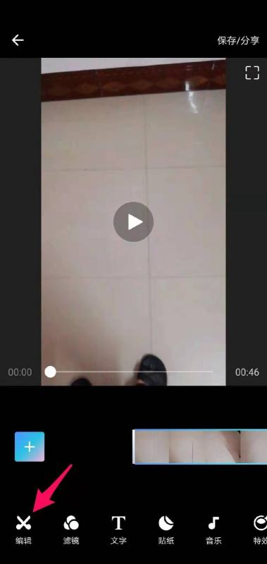 3、进入到视频的编辑界面选择下方的编辑功能选项。