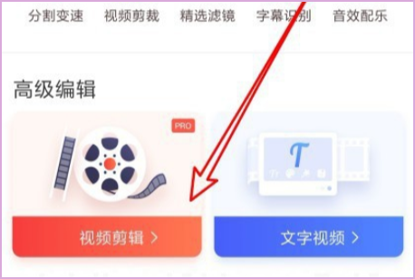 2、在快影的主页面可以看到“视频剪辑”功能,点击打开;