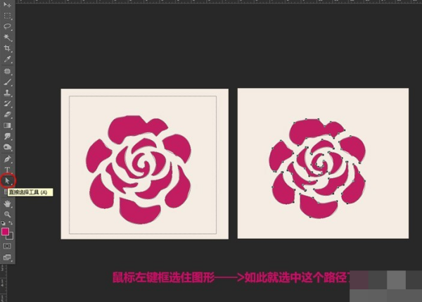 5、选择工具栏的直接选择工具,鼠标左键框选住图形,如此就选中这个路径了。