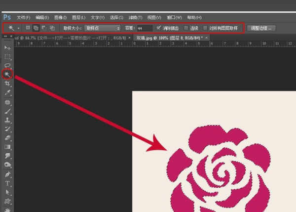 7、ctrl+enter,ctrl+d,取消路径选择, 新建一个图层,选择工具面板——自定义形状工具,在图层上就可以画出一个玫瑰花瓣的形状。