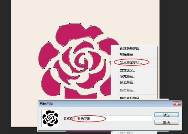 6、右键——定义自定形状,给形状取个名字,然后确定;