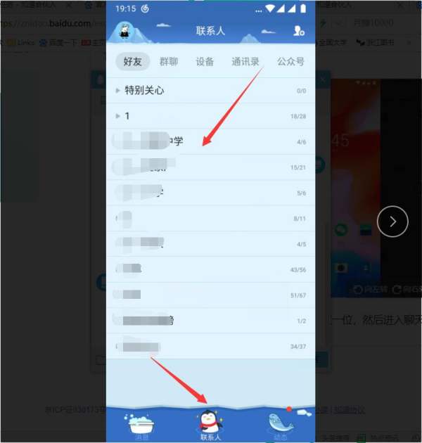 2、然后进入到QQ页面之后,在自己的好友列表中随意选取一位,然后进入聊天界面中。
