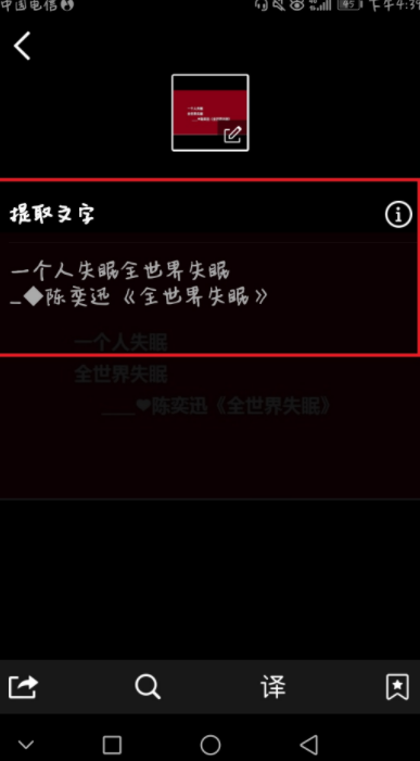 5、接下来就可以识别图片中的文字出来,然后就可以复制文字了。