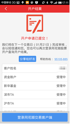 4.提交申请成功,审核结果将在1个交易日后以短信或电话形式通知