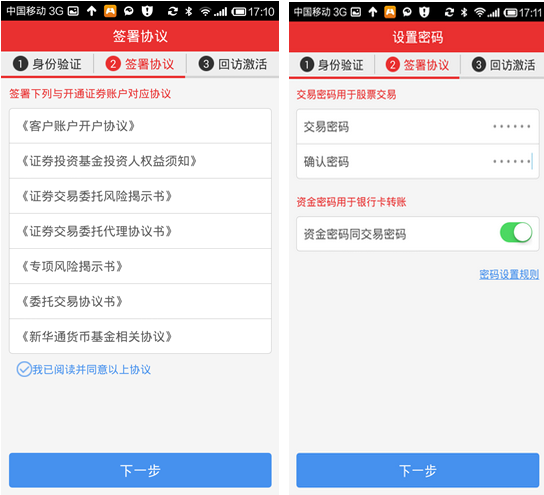 第五步,进入这里一般有两个选择,一般没有注册过的新用户首选第一个,点击马上开户,进入下一步