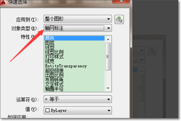 8、继续执行qse命令,选择对象类型为轴网标注并确定。