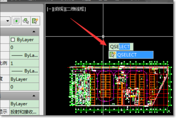 2、执行快捷命令qse(QSELECT)并空格确定打开快速选择窗口。