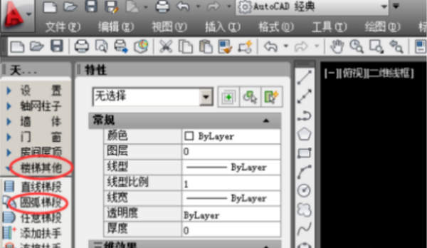 1、首先在打开的PLC软件选择"楼梯其他"进行打开,打开之后在下方的圆弧梯段,选择圆弧梯段即可,如下方两个红色圈圈所示。