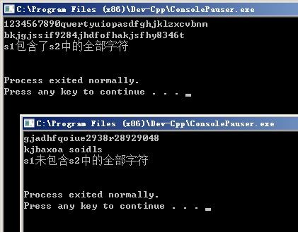 if(k)printf("s1包含了s2中的全部字符\n");//根据是否有记录输出相应记录