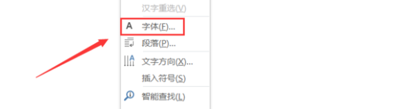 2、然后我们需要进入word后在文本处点击鼠标右键,然后选择字体。