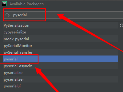 4、然后在左上角的搜索框搜索pyserial并选中pyserial,如图。