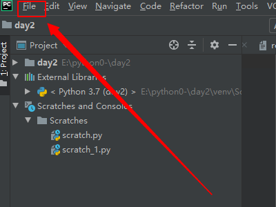 2、点击file,里面有一个setting。进入setting后点击“progect”下的Project Interpreter,如图。