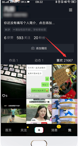 3、返回个人页面,点击喜欢,即可看到自己的浏览记录但仅限于已点赞的作品。