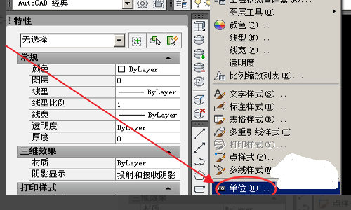 3、选择相应的标注后,鼠标右击空白处,在弹出的菜单中鼠标指向单位。