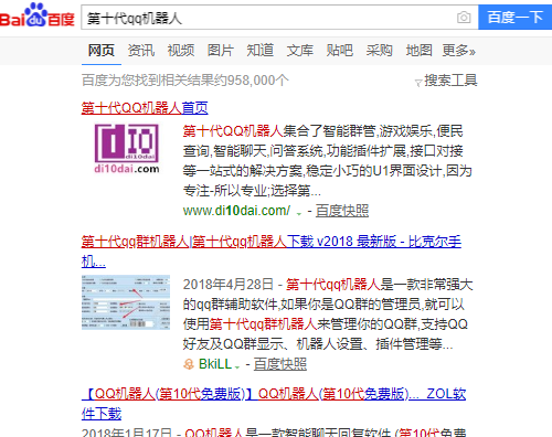 1丶百度搜索“第十代QQ机器人”。