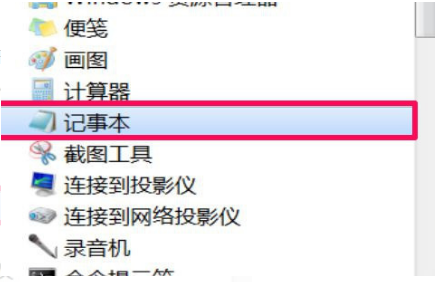 1、首先,先从开始菜单->所有程序->附件中->打开记事本,如下图所示。