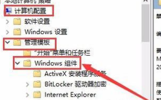 3、 在 "本地组策略编辑器" 窗口中, 点击 "计算机管理/管理模板/windows 组件" 菜单项。