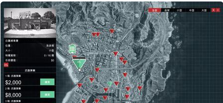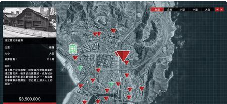 之后进入购买页面,仓库一共分为22个,分三个级别,第一级别大型仓库,仓库容量111箱货,贩卖一次利润在200多W左右,仓库售价为200W-300W左右!第二级别中型仓库,仓库容量42箱,贩卖一次利润在70W左右,仓库售价为90W左右,第三级别,就是最为便宜的了,小型仓库,仓库容量16箱,贩卖一次利润在25W左右!