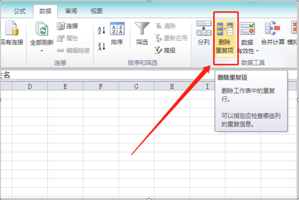 2、然后我们点击打开数据中的“删除重复项”。