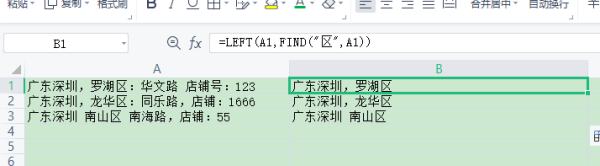 假如数据从A1开始的 你先手动复制一个 例如(广东深圳,罗湖区)到B1
