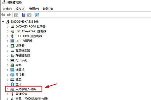 3、到设备管理器的界面,选择人体学输入设备选项。