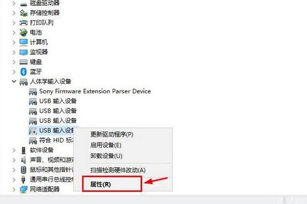 5、右击该usb输入设备选项,在弹出的右键菜单中选择属性选项。