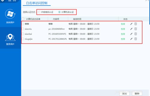 4、在这里就可以看到“白名单访问控制列表”,认证方式等,点击下方的“添加”。