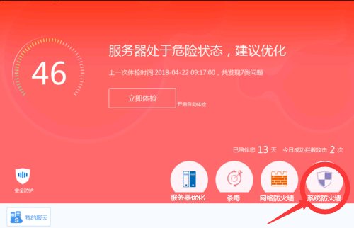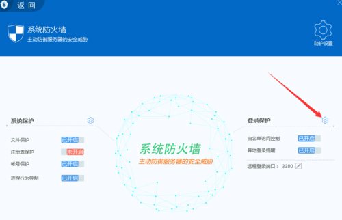 3、进入“系统防火墙”主界面,点击“登录保护”右侧的设置图标,进入保护设置界面;